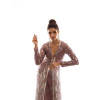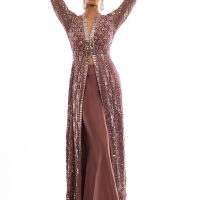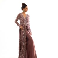 This Long front open Shirt has double diamond Weave , Fully embellished with Silver coloured sequins and scallops on the hem line.