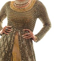 - Each ensemble is bespoke, handmade, and hand-sequinned. Delivery times vary between 12–16 weeks.